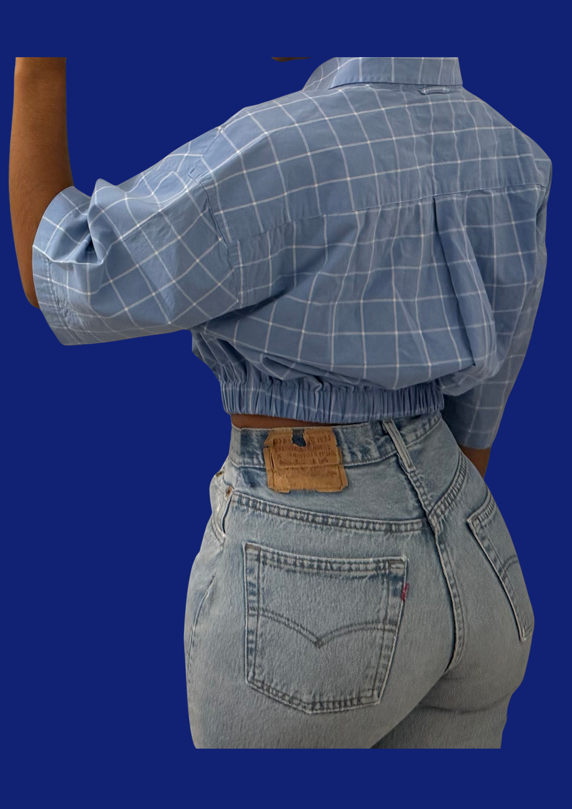 Découvre cette chemise cropée Tommy Hilfiger bleu upcyclé, fabriquée à partir d’une chemise authentique Ralph Lauren. Elle offre un confort exceptionnel.
